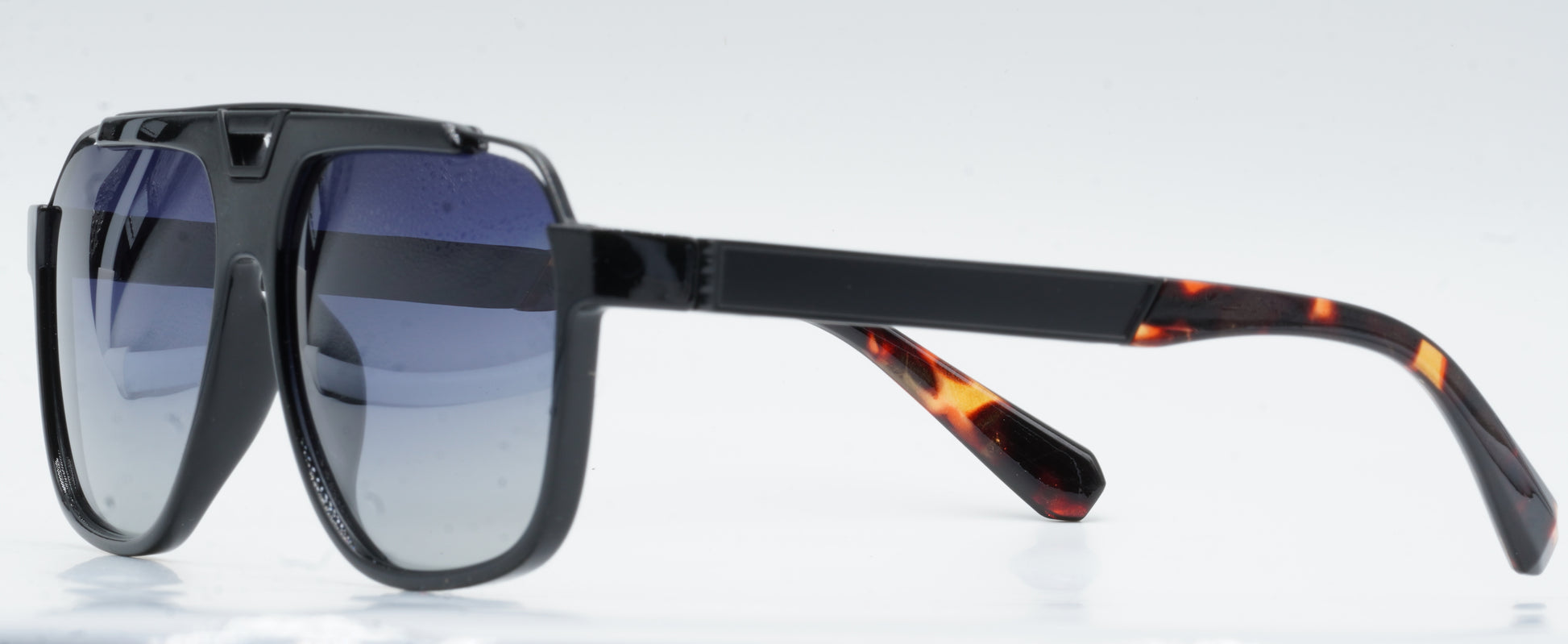 • Verres solaires gris dégradés polarisés :Les verres solaires polarisés réduisent efficacement les reflets et améliorent le confort visuel. Le dégradé gris apporte profondeur et douceur visuelle, tout en garantissant une protection solaire agréable au quotidien.